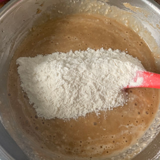 Whisk in the oil gradually.Now add the flour mixture in 3 additions and the butter milk in 2 additions, starting and ending with flour.