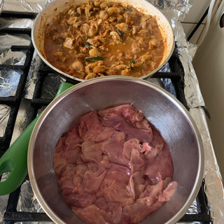 Liver & Gizzard Fry 1.Liver & Gizzard-400 gm each[small pieces] 2.onion-2 garlic-8-10[crushed] ginger-1 big piece[crushed] Heat 1 1/2 tbsp oil in a kadai & saute the chopped onions and then the ginger garlic crushed and saute till it starts to brown. 3.chilly pwdr-1tsp corriander pwdr-1 tsp turmeric-1/4 tsp Add all the above masalas and cook on low heat till oil separates. U can add some water to this so that the masalas don’t burn.Add gizzards and 1 tbsp vinegar and then cover with a lid & cook.when it's cooked add the liver and continue to cook .Now add the salt, garam masala pwdr & freshly powdered pepper to this & cook till all the water dries up.Always add salt only after the liver is cooked otherwise it will harden.